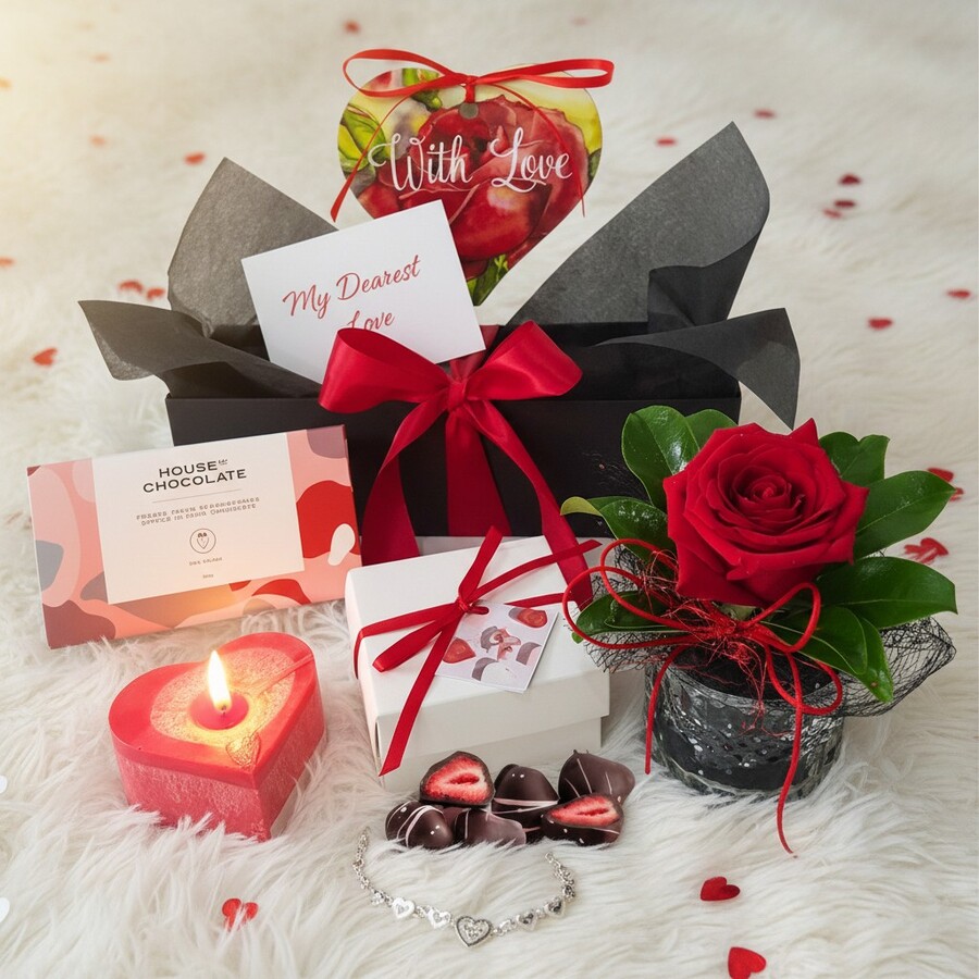 This romantic Red Rose Gift Box is a timeless love gift, perfect all year round and especially popular for Valentine’s Day, anniversaries, and meaningful romantic surprises. It features a premium red rose presented in a crystal cut glass vase, paired with indulgent treats and beautiful keepsake gifts.